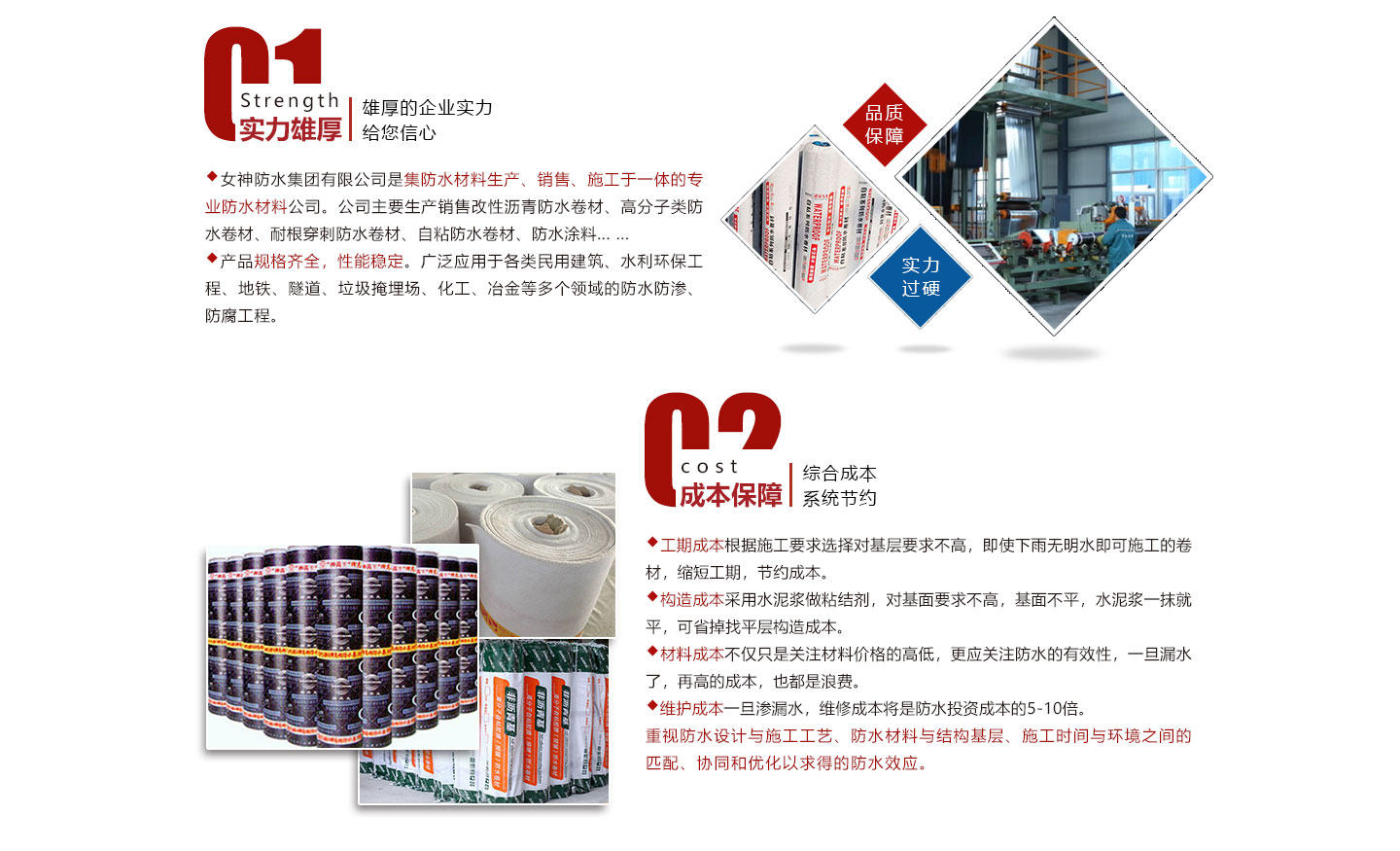 安徽女神建材科技集團有限公司是集防水材料研發(fā)、生產(chǎn)、銷售、施工為一體的綜合性防水材料集團公司。我公司旗下有多條大型一次成型生產(chǎn)線:SBS改性瀝青防水卷材,DTM聚酯復(fù)合高分子防水卷材,非瀝青基高分子防水卷材,PVC,TPO高分子防水卷材等生產(chǎn)線。我公司秉承“創(chuàng)新發(fā)展、實惠用戶”為宗旨,確保生產(chǎn)材料基礎(chǔ)上推出“共享生產(chǎn)廠家”,為開發(fā)商、建筑商節(jié)約成本為理念,新理念受到用戶企業(yè)集采時一致好評和認(rèn)可。在互聯(lián)網(wǎng)時代,我公司將以互聯(lián)網(wǎng)“共享”為發(fā)展理念,為開發(fā)商、建筑商、防水企業(yè)提供的產(chǎn)品,真正讓用戶企業(yè)達到巨大...